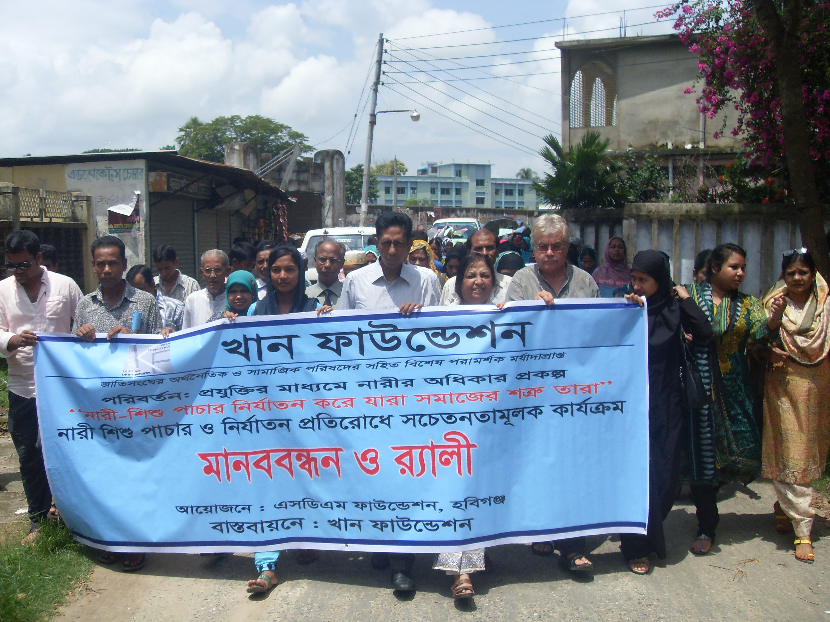 Professor Hkan Hydn, Sociology of Law, Lund University, Sweden visits Khan Foundation and PARIBARTAN: Advancing Womens Rights through Technology Project![]() Dr. HkanHydn, Professor in Sociology of Law, Lund University, Sweden and Fellow of the World Academy of Arts and Sciences visited Khan Foundation and Paribartan: Advancing Womens Rights through Technology as part of the Social Innovation in a Digital Context Program of the Swedish Institute, of which Nausheen Khan is a participant.He did an office visit on August 6, 2014, Wednesday. A short presentation was given on Khan Foundation's activities and the project "PARIBARTAN: ADVANCING WOMENS RIGHTS THROUGH TECHNOLOGY". This project is working in seven districts including Jessore, Satkhira, Joypurhat, Hobiganj, Sunamganj, Chapainawabganj, Faridpurto ensure basic human rights by combating trafficking and violence against women. Professor Hkan shared his experiences of working in the area of human rights, legal rights and social norms. Dr. Hkan Hydn also visited Hobiganj with a team from Khan Foundation on 7th August, 2014 which is one of the working areas of PARIBARTAN. A day long program was arranged by SDM Foundation with the support of Khan Foundation in Hobiganj. The events included Rally & Human Chain; Meeting with Public Representatives at Union Parishad; Sharing Meeting with Community Watch Group Members, Victims, and other Stakeholders. |