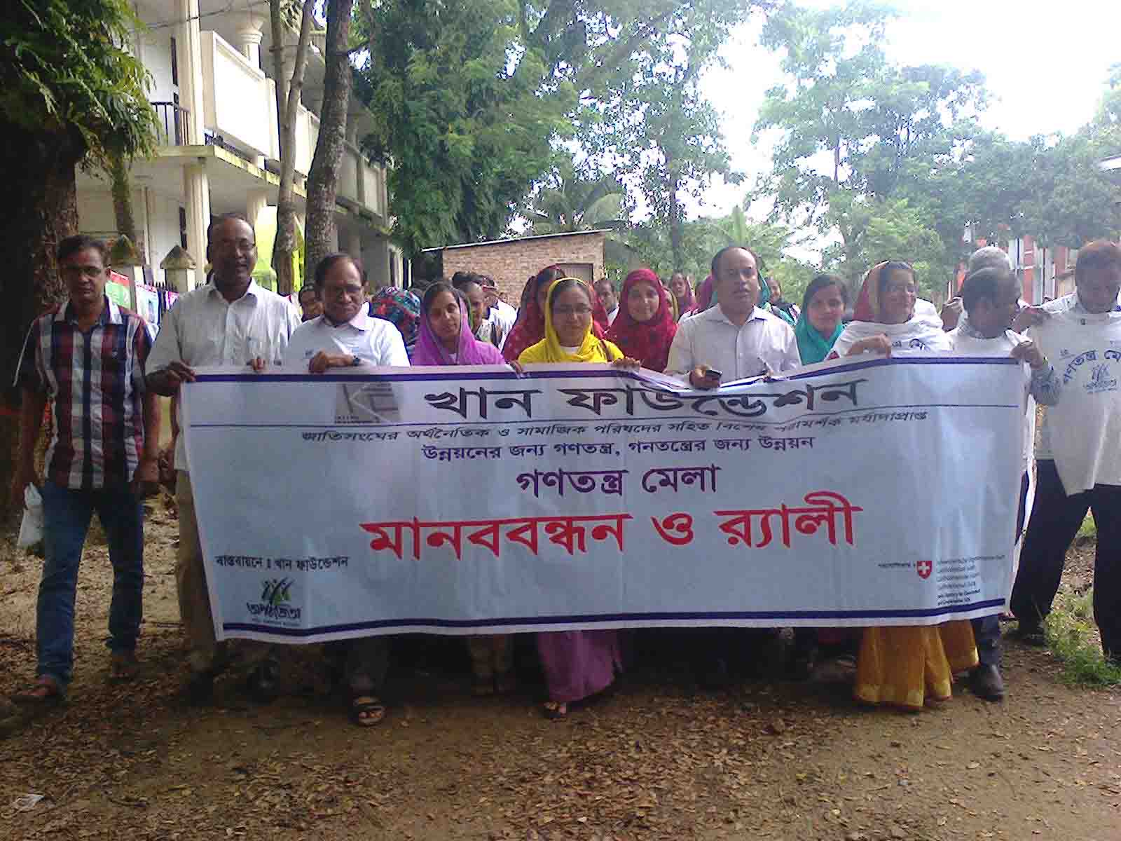 Democracy Fairs of APARAJITA![]() Democracy and good governance aretwo sides of the same coin. Democracy cannot be institutionalized and sustainedwithout good governance, and good governance, including governance at the locallevel, cannot be ensured without the sustained practice of democracy. 8Democracy fairs have been organized during the reporting period two in Coxsbazar and one each in Chittagong, Comilla, Manikgonj, Meherpur, Natore andBrahmanbaria districts. A series of activities and events (Rally, Human chain,Debate, Art competition, Discussion meeting, Prize giving ceremony, Culturalprogram etc.) were included in these democracy fairs, have been implemented tostrengthen local government and promote good governance. The ultimate purposeof all of these initiatives is to help foster democracy and development inproject areas. Total 1809 participants attended these events. Among them 818were Women & 991 were Men.