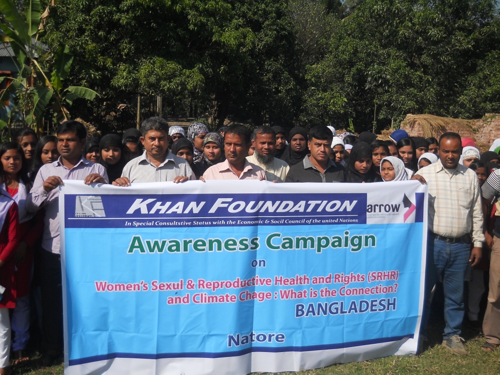 Awareness Campaigns On Womens Sexual and Reproductive Health and Rights (SRHR) and Climate Change & SRHR: What is the Connection?![]() The Building NewConstituencies for Womens Sexual and Reproductive Health and Rights (SRHR):Climate Change & SRHR projectedwas initiated through a joint partnership between ARROW and Khan Foundation.The goal is to create knowledge and awareness on impact of global climatechange on sexual and reproductive health and rights (SRHR) of poor andmarginalized people in Bangladesh in an effort to improve SRHR services at thelocal community level as well as influence policy decisions at thenational/regional level. The aim is to increase the resilience of communitiesso that women and girls can adapt to climate change. The project also addressesthe issues of impact of climate change on sexual and reproductive health rightsnationally by generating facts and figures. With regards to grassroots awarenessand campaigns of 2015 at the Local Level, KF conducted campaigns in designatedworking areas to raise awareness amongst the targeted groups on the concernedissues. Important messages were disseminated through the IEC materials such as:Posters, Stickers, Banners, and Leaflets. These materials also used todisseminate information through Rallies, Human Chains, Sharing meetings,Cultural Programs etc. in the working areas ARROWs: Gaibandha, Lalmonirhat,Borguna, Patuakhali, Sunamganj,Moulabhibazar, Chittagong, Coxs Bazar,Chandpur, Satkhira, Sirajganj and Hobiganj. |