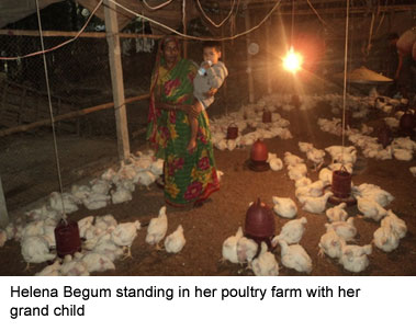 We are telling about Most. Helena Begum whose husband is Md. HabiburRahman works as a day laborer. They have four children including three daughters and a son. They were financially very poor and their son is retard. A woman from neighborhood informed Helena about the loan facilities of women development society of Khan Foundation. Every Saturday a person from Khan Foundation comes to the Samity and talk to women about their livelihood. He advice them to earn for their family thus they can help their husband. According to him, women can generate income through tailoring work, cultivate vegetables in yard or cultivate fish by cleaning the pond and in many other ways. After attending that meeting Helena came to home and consult with her husband about starting a poultry farm. Next week, she attended the meeting along with her husband and took loan of taka 5000 for poultry farm. They bought some chicken and after 1 month those chicken grew up and they sold them. With that money they paid back per week installment of the loan. After that Helena gradually took loan, amount of 10000, 15000 and 30000 and extends the range of the farm. According to Helena Begum '"now we do not have any financial crisis. Our children are studying regularly. I am grateful to Khan Foundation Women Samity and the executive director Advocate RokhsanaKhondokar. She is very concern about the rural women development. I pray to Almighty Allah to fulfill her wishes." Rupa Begum a school teacher turned Public Representative